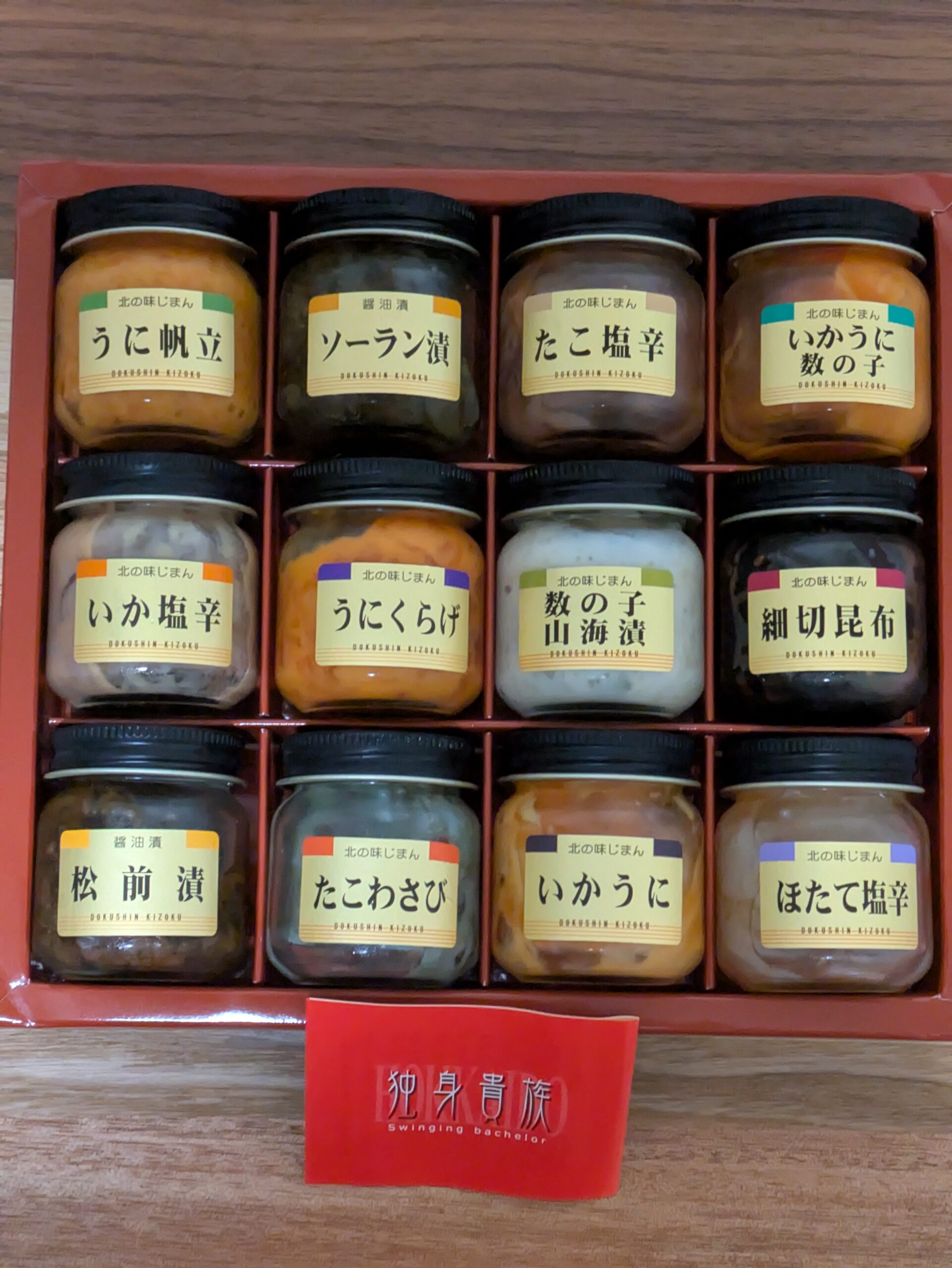 独身貴族は北海道の人気珍味詰め合わせセットで、ご飯のお供やお酒の肴に最適な海鮮珍味や発酵食品を食べきりサイズで楽しめる商品です。